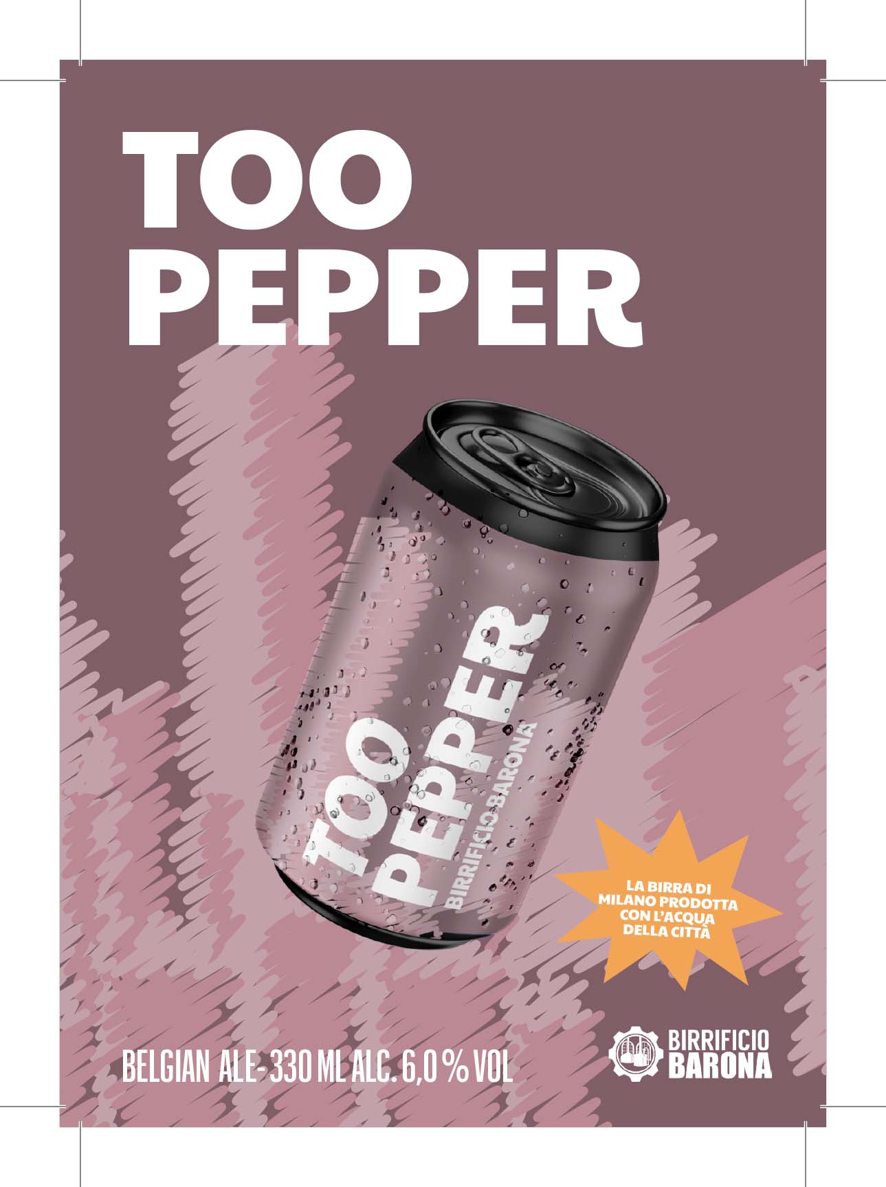 «Due non sono troppi», se parliamo di tipi di pepe, soprattutto se ci aggiungiamo anche il bergamotto. Da questo principio parte la creazione della Too Pepper, una birra “ruffiana” che strizza l’occhio alle birre belghe per tenore alcolico, profumi e ricchezza di corpo. Il pepe nero dà una punta di piccantezza amara, mentre quello rosa apre la bocca alla dolcezza del bergamotto, un sapore che mette d’accordo tutti. Questa Belgian Saison regala un’esperienza che va oltre alla semplice bevuta... pur andando giù molto bene!